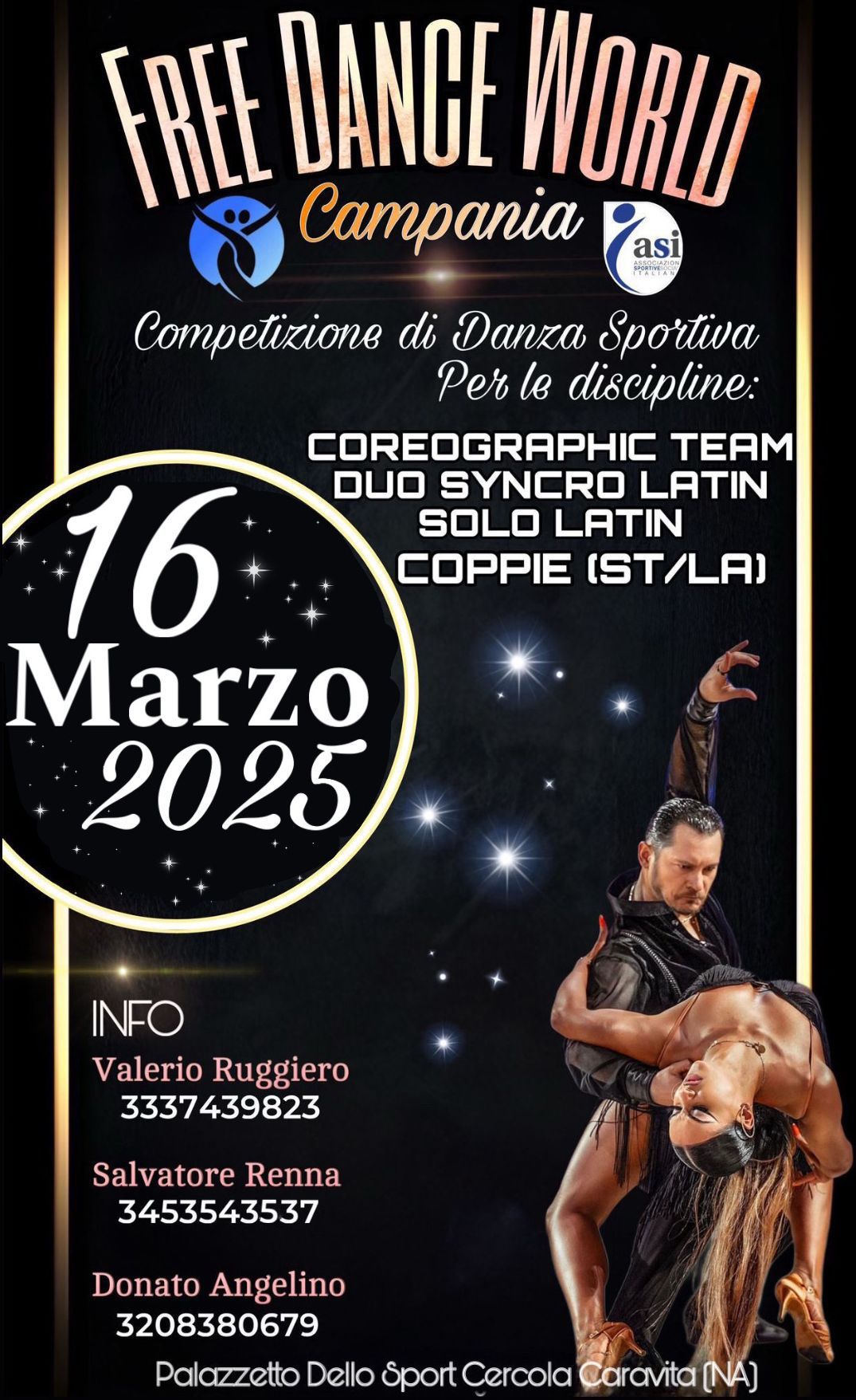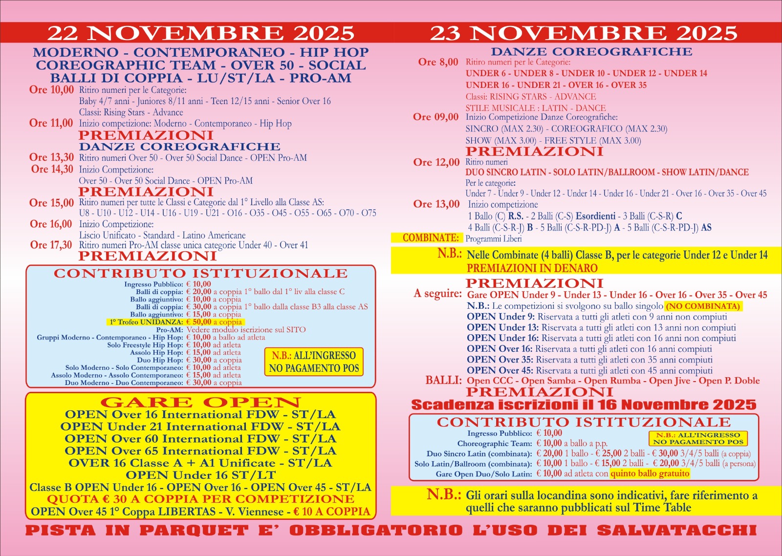 Free Dance World – Velletri 22 e 23 Novembre Free Dance World - Velletri 22 e 23 Novembre 2025 REGOLAMENTO BALLI DI COPPIA REGOLAMENTO STREET DANCE REGOLAMENTO SOLO, DUO E GRUPPI REGOLAMENTO ACCADEMICHE ISCRIZIONI ONLINE APERTURA ISCRIZIONI:13/10/2025CHIUSURA ISCRIZIONI: 16/11/2025 per Modifiche o Informazioni iscrizioni scrivere a: Iscrizioni.jess@gmail.com Link ISCRIZIONI Online ISCRIZIONI CHIUSEper Modifiche o Accorpamentiscrivere a (accettiamo modifiche fino alle ore 09.00 del 14/05/2025): scrivere a:Iscrizioni.jess@gmail.com Lista Iscritti Per modifiche e Accorpamenti scrivere a:iscrizioni.jess@gmail.com Lista Iscritti (SCALETTA) Domenica Time Table DOMENICA Lista Iscritti (SCALETTA) SABATO Time Table SABATO Lista Iscritti (SCALETTA) Domenica Time Table DOMENICA Risultati e Skating Evento Risultati e Skating Evento TIME TABLE: TIME TABLE - SABATO TIME TABLE - DOMENICA Free Dance World - CALENDARIO EVENTI 2025/2026 Risultati e Skating Evento Risultati / Skating Online 20/21 APRILE CAMPIONATO ASI: VOTAZIONI ONLINE
